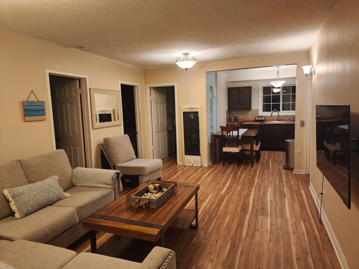 This is a private spacious &clean unit with B/room and a L/room, 1 bathroom, 4 optional beds to sleep- full bed & single trundle 1 bed-chair 1 Folding bed coffee table/desk T.V Table & chairs Can fit up to 4 people. room receives natural light when desired & the privacy will make it a great experience for a personal, couples, or family getaway,those coming to work Enjoy the tranquility as you have your tea/coffee in the multiple inside/outside seating There is a private entrance to the unit.