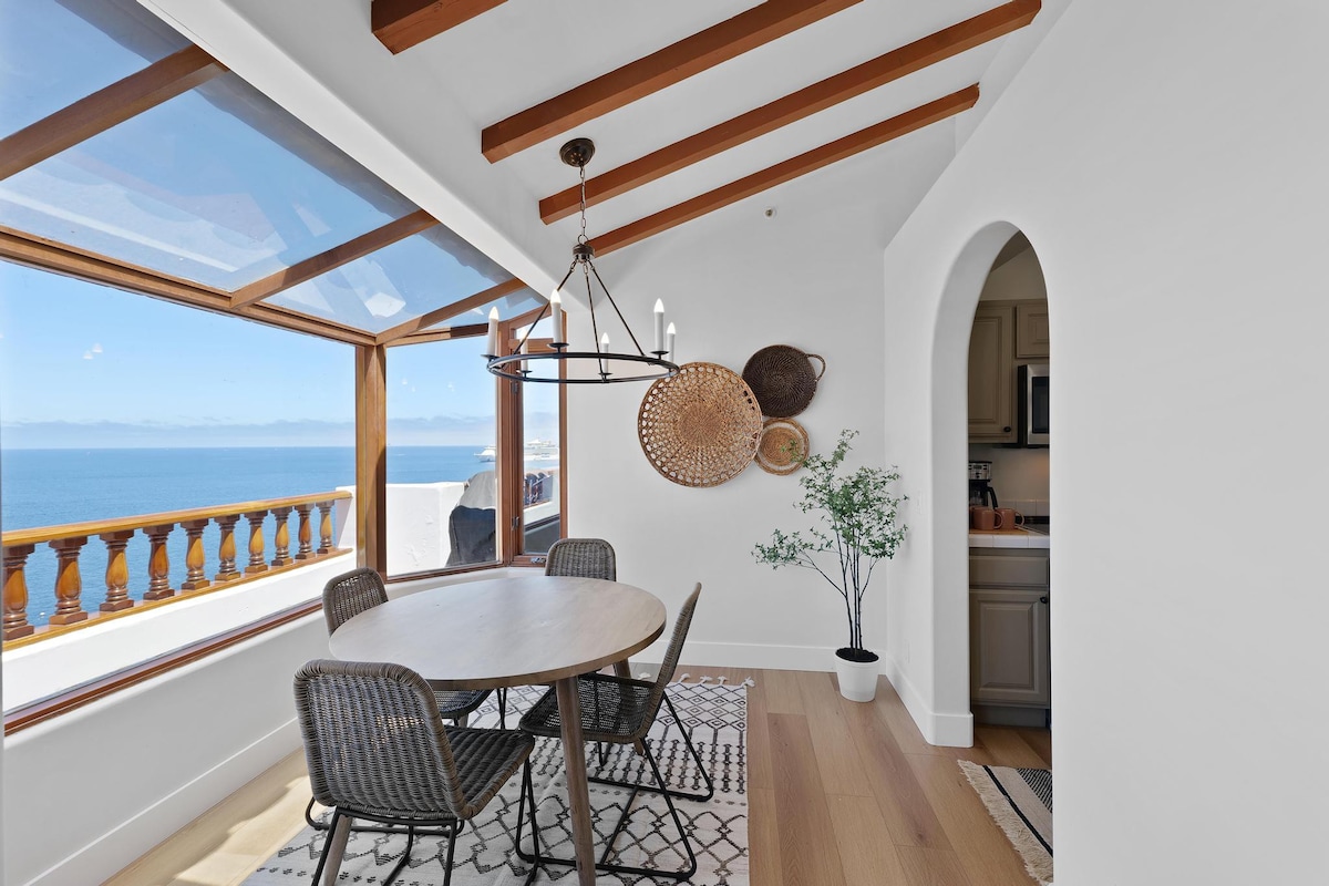 Welcome to Vista Blanca, a brand-new luxury oceanfront 1BR villa in Catalina’s prestigious Hamilton Cove. Take in breathtaking panoramic views, relax on your private terrace, and explore Avalon in your complimentary 4-seat golf cart. This stylish escape includes a king bedroom, full kitchen, Smart TVs, beach gear, and access to a resort pool, tennis courts, private beach, and more. Vista Blanca is your perfect island retreat—just 26 miles from LA.