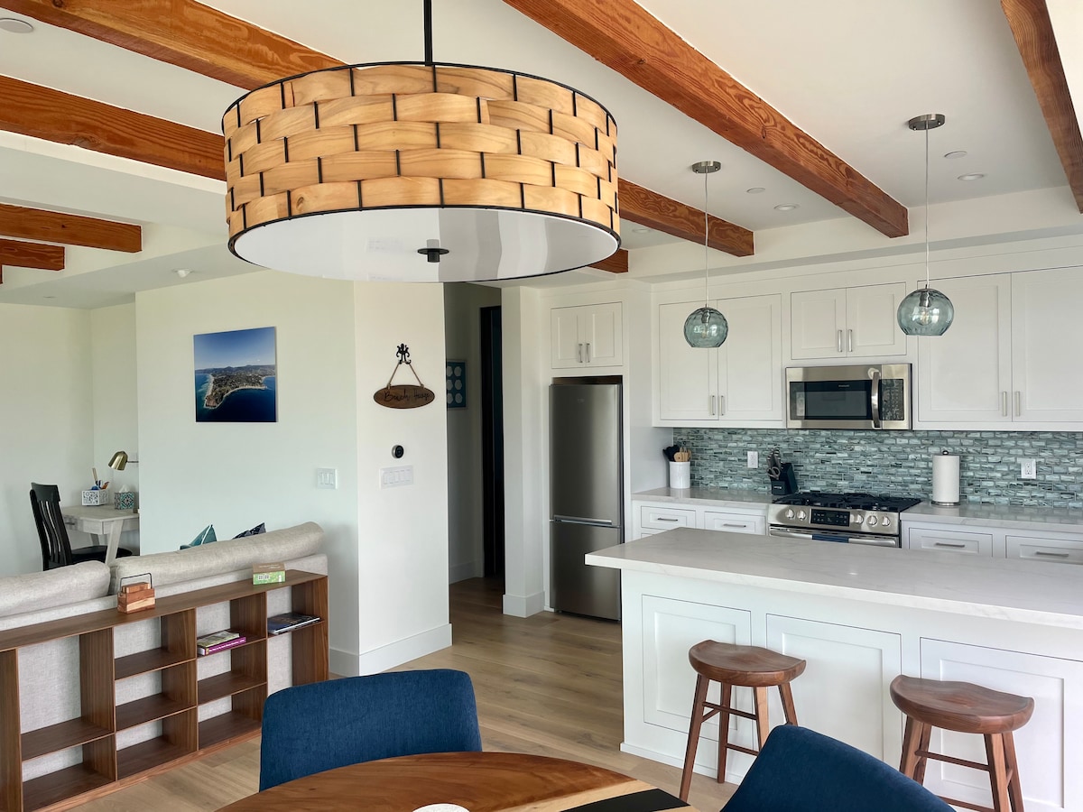 Relax in this cozy one-bedroom coastal retreat with ocean breezes, a Smart TV, a dedicated workspace, and a secluded private outdoor space. Polished beeswax-finished concrete earthing floors connect you to the ground for a calm, restorative stay. Cleaned following CDC guidelines with added UVC sanitizing and a Dyson air purifier. Set on a quiet street near the harbor, beaches, surfing, sunsets, whale watching, and local yoga. One parking space included.