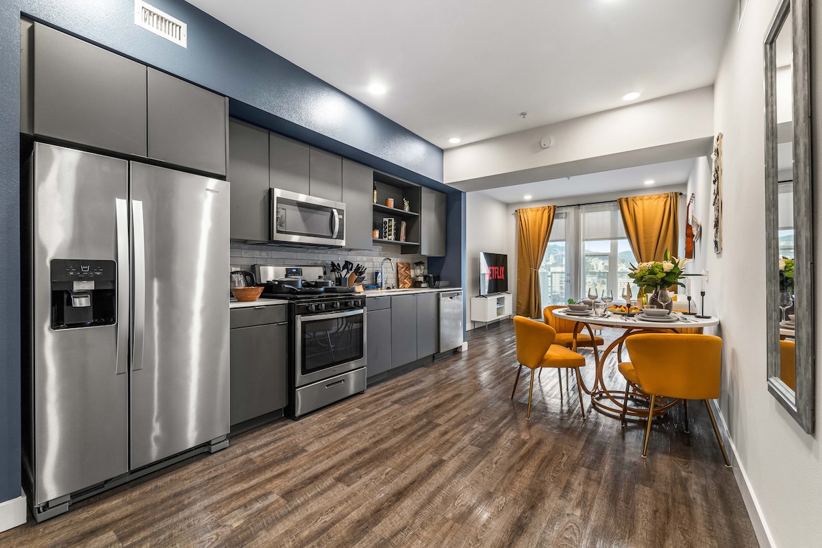 Welcome to your oasis in the heart of Downtown LA! Located in the groovy Theater District, Golden Hour Loft is the perfect way to experience Los Angeles — from your fairytale swing high above the skyline. Hot tub, pool, cabanas, gym, record player, board games & coffee bar: this is your home base to live your DTLA dream. Our 97 Walk Score means you’re only steps from the trendiest shops, eats & drinks in the city. And did we mention free parking? All of Los Angeles is at your fingertips.