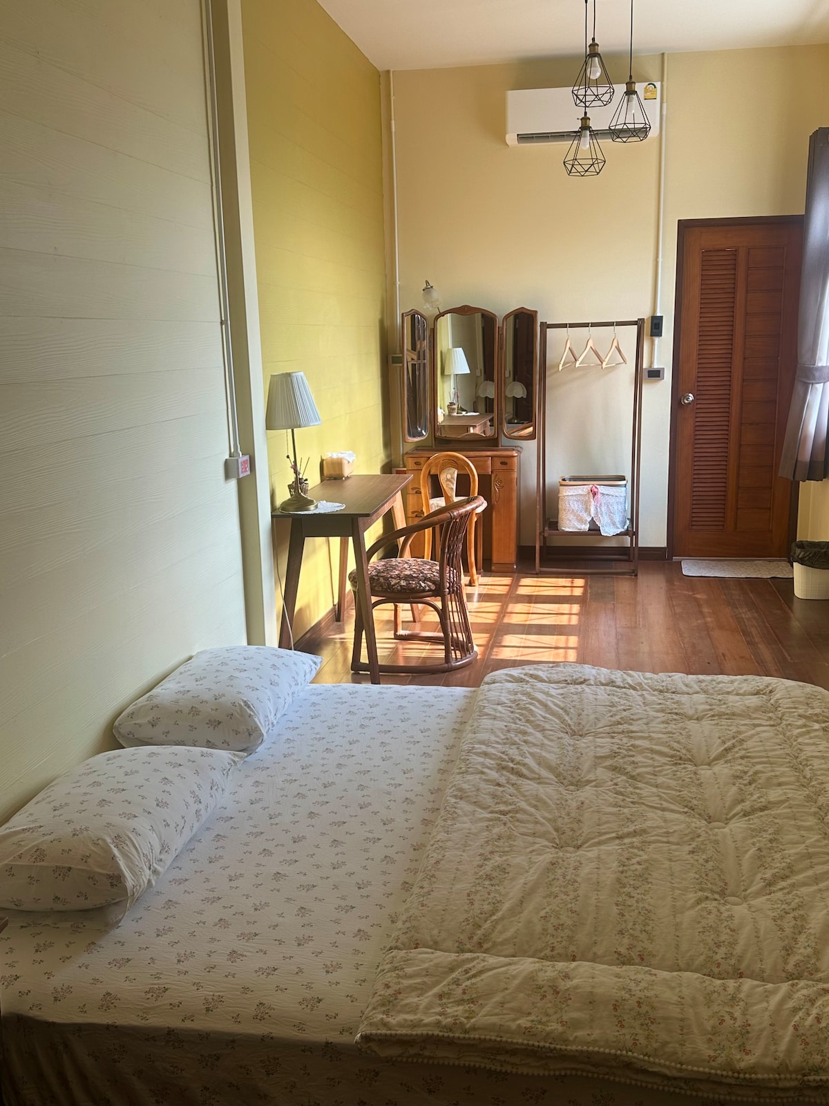 บ้านของเราเป็นโฮมสเตย์ที่เปิดพื้นที่ส่วนตัวให้ผู้เข้าพักได้พักผ่อนท่ามกลางธรรมชาติอย่างอบอุ่นและเงียบสงบ เหมือนมาเยี่ยมบ้านเพื่อน ที่พักเป็นบ้านหลังเล็ก มี 1 ห้องนอนพร้อมเตียงคิงส์ไซส์นุ่มสบาย ห้องน้ำส่วนตัว พื้นที่แยกเปียก–แห้ง และมี 1 ห้องนั่งเล่นพร้อมโซฟาเบดที่กางนอนได้ ทั้งห้องนอนและห้องนั่งเล่นมองเห็นวิวเขา ให้ความรู้สึกสดชื่น ผ่อนคลาย พร้อมระเบียงส่วนตัว มีสระว่ายน้ำระบบเกลือ ที่พักมีจุดชาร์จรถ EV และบริการรถรับ–ส่งสนามบิน(มีค่าใช้จ่ายเพิ่มเติม กรุณาสอบถามล่วงหน้า)