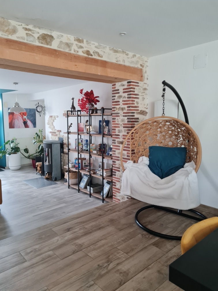 Respect du protocole de nettoyage renforcé établi par Air BnB Gîte de 130 m2 aménagé dans une ancienne grange réparti sur 2 niveaux. RdC : pièce de vie avec coin cuisine et coin salon. WC séparé. 1 chambre avec salle d 'eau privative (+ machine à laver). Etage : 1 chambre avec salle d'eau privative + couchage pour 2 enfants. WC séparé. Extérieur : cour anglaise de 93 m2 avec salon de jardin + barbecue + parasol + bains de soleil. Espace vert non cloturé accessible côté gîte et côté maison.