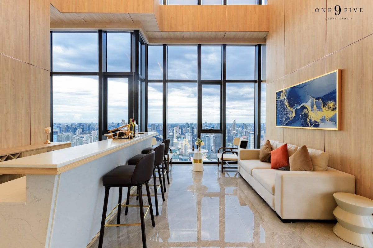 ✔5min BTS SaphanTaksin ✔Located at the heart of the capital on the 49th floor ✔Penthouse - Top floor unit with high ceiling throughout, the river view is the best in Bangkok 📣There are "No Airbnb" signs, but we made an agreement with the management (see reviews) ✔High speed internet for HDMI cable for meeting, Smart TV ✔3 luxury-class BR + 2 bathrooms ✔Jacuzzi on a vast leisure balcony ✔Walking distance to shopping mall and 7-11 * Thai style breakfast 1time for booking 2nights up
