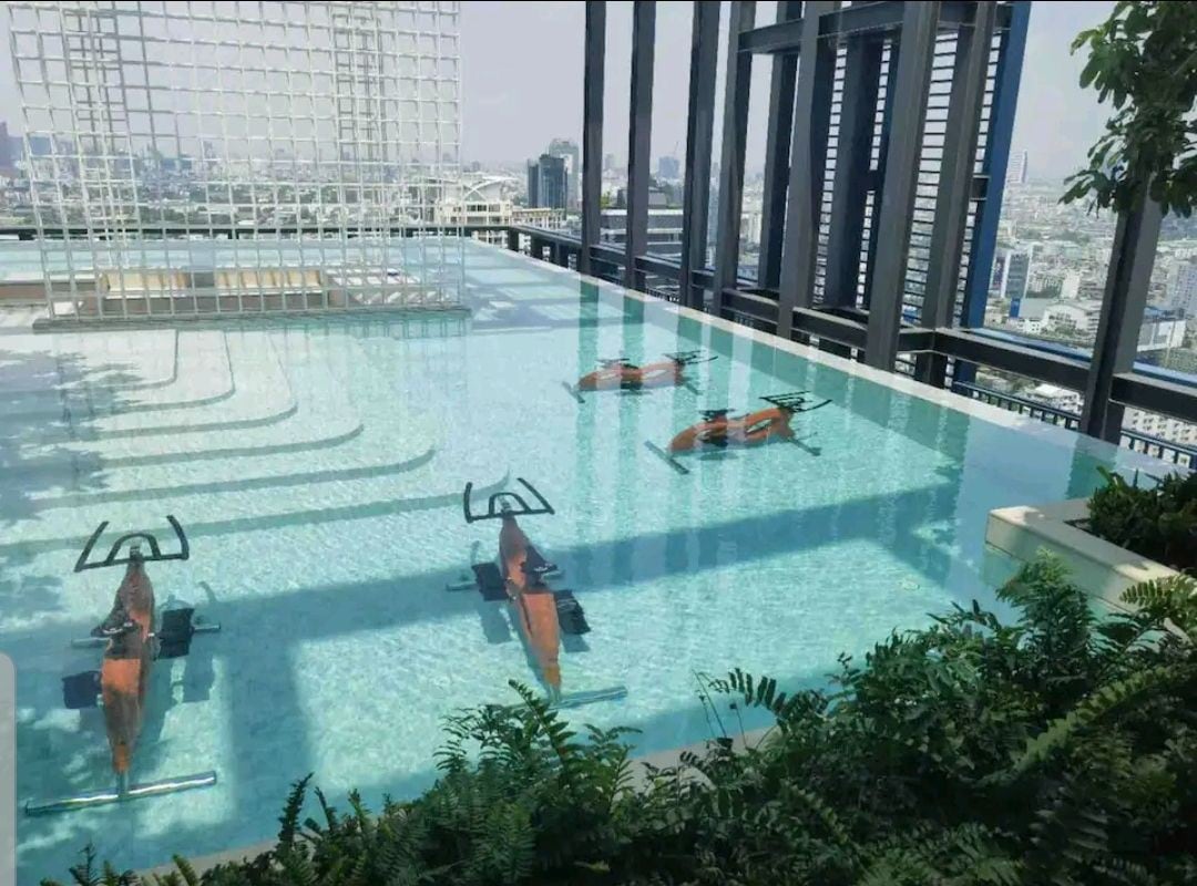 Experience modern living in a stylish vertical room, centrally located in Nonthaburi. 5 minutes walk to the MRT Nonthaburi Station, connecting you to Bangkok's downtown. Relax at the stunning skyline swimming pool or stay active at the fully equipped gym. Unwind in the sky lounge, offering breathtaking river views. Just a short walk away, explore every night busy Owl Night Market and shop at Central Rattanathibet. Perfect for travelers seeking comfort, convenience, and a touch of luxury!