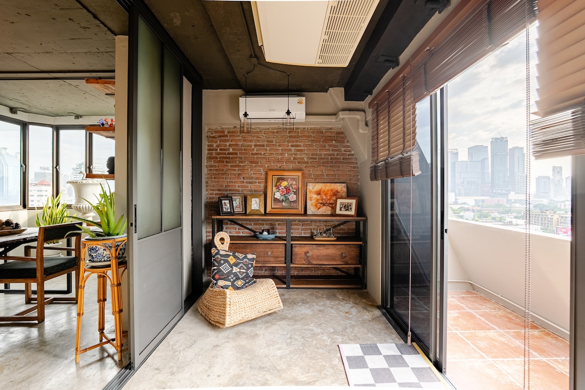 CHAIYO ROOM – A SPACIOUS RETREAT WITH A PRIVATE TERRACE A 50m² loft-style suite perfect for couples or travelers seeking a private, stylish escape. Featuring 1 queen bed + 1 sofa bed, this thoughtfully designed space offers a seamless blend of comfort and city charm. ✔ Fully equipped private kitchen ✔ Expansive terrace with outdoor seating ✔ Elegant décor combining urban energy with warmth Unwind in a rare Asoke hideaway, where modern comforts meet an authentic Bangkok experience.