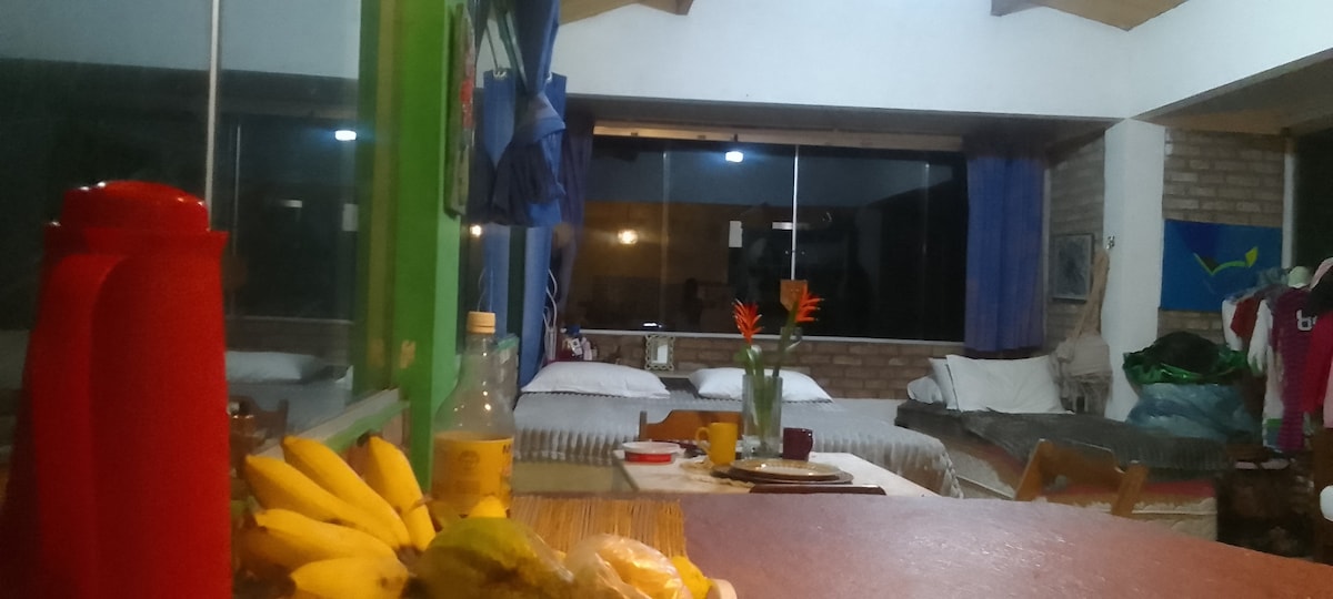 Venha se hospedar numa obra de arte com conforto e luxo no meio da natureza. a casa fica num sitio bem tranquilo e seguro, 1km da praça central. oferecendo um ambiente artístico e saudável com ar livre, agua pura e frutas orgânicas do quintal. o sitio e agro-florestado e oferece um acesso a um lindo balneário natural, rios e cachoeiras. wi-fi livre, Banheira Ofurô Duplo, cozinha completa, aquecedor solar e tratamento ecológico de todos os resíduos. oferecemos aulas de yoga e permacultura .