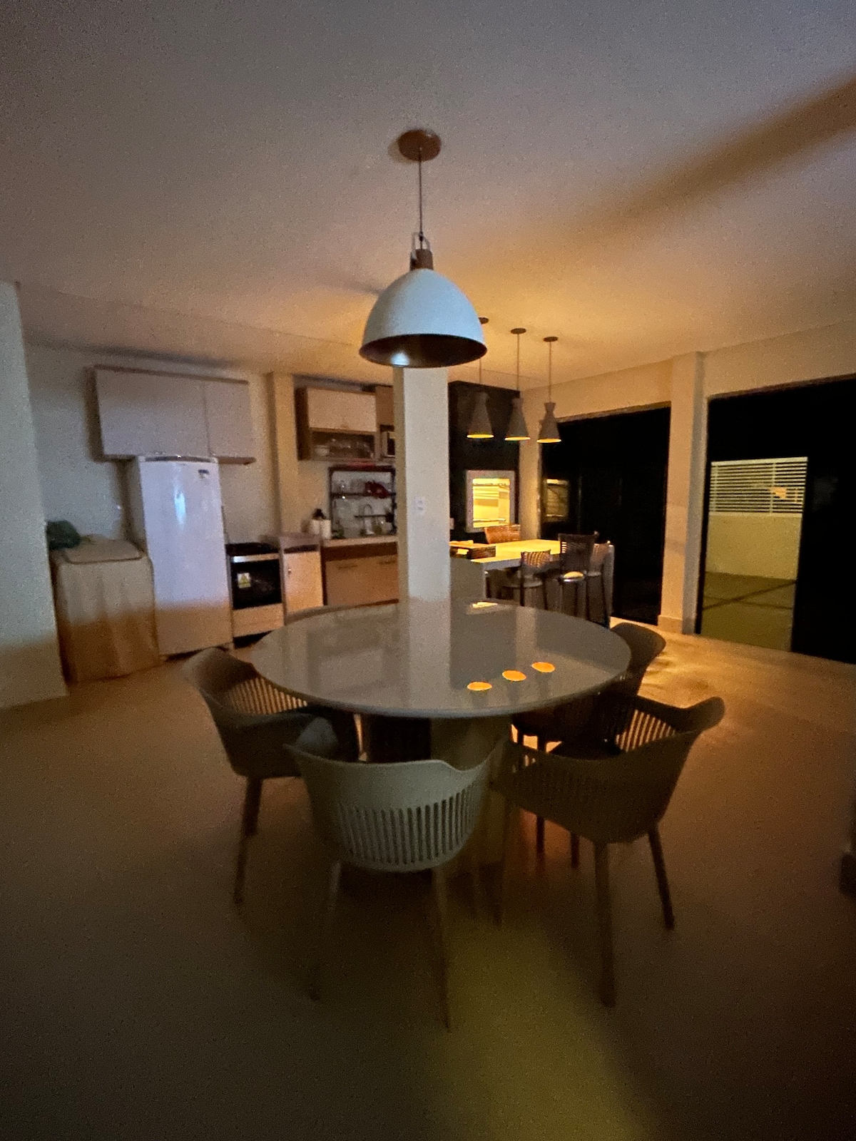 Casa com ambientes integrados estilo Loft para que amigos e familiares possam interagir, sendo ideal pra quem busca desconectar da cidade em um ambiente tranquilo. Espaço para cozinhar e preparar as refeiçoes. Está localizado em um condomínio próximo da entrada na cidade.
