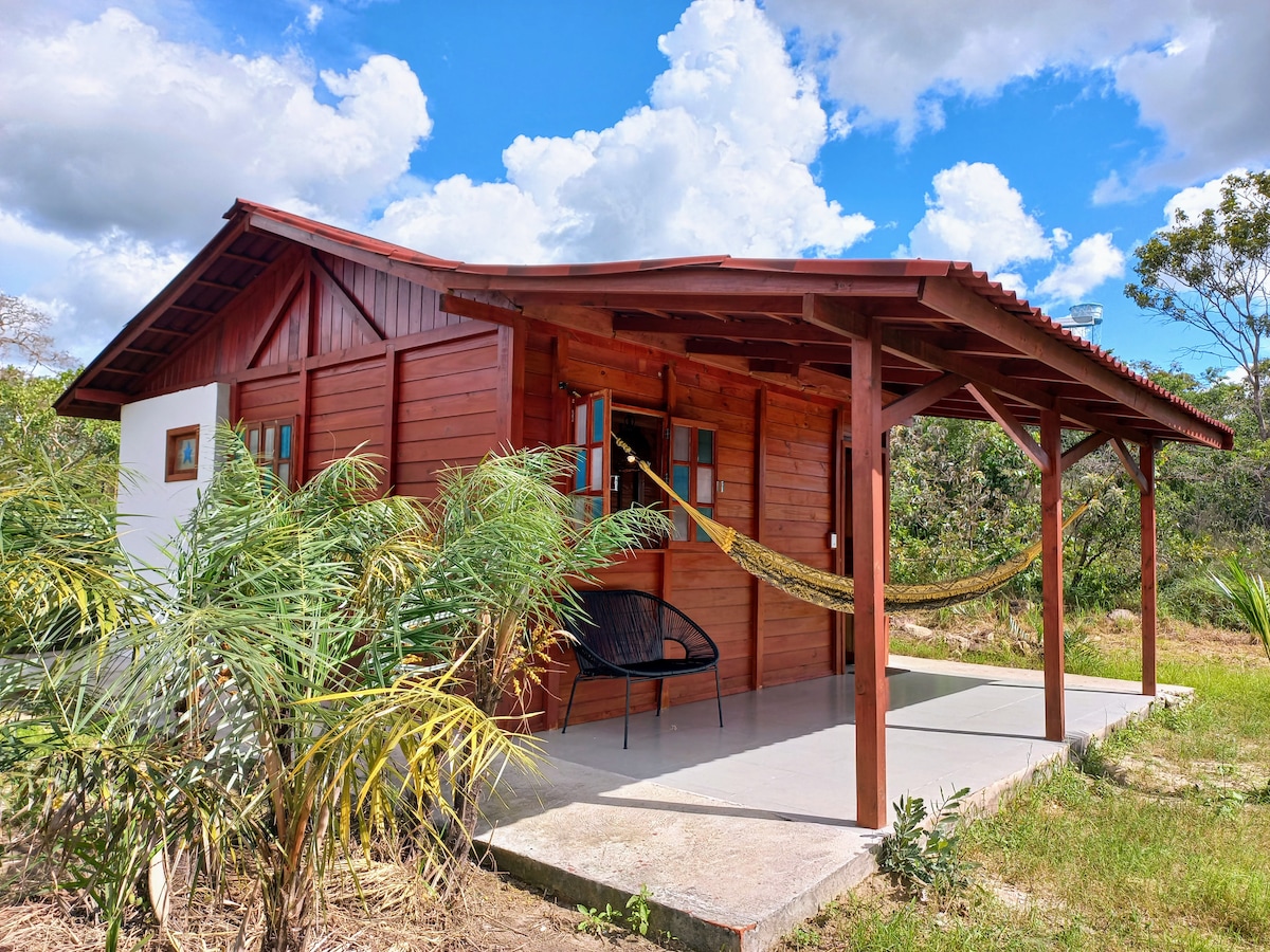 Cabana exclusiva na Chapada dos Veadeiros, perfeita para quem busca descanso e conforto em meio a 1.000m² de cerrado preservado. Com um design minimalista que se integra à natureza, oferece uma vista espetacular do nascer do sol, ideal para casais. Aproveite a rede suspensa para admirar as montanhas e as estrelas, além da banheira de imersão com aquecimento a gás, sais de banho e jardim de inverno, proporcionando uma experiência relaxante e inesquecível em um cenário de pura beleza natural.