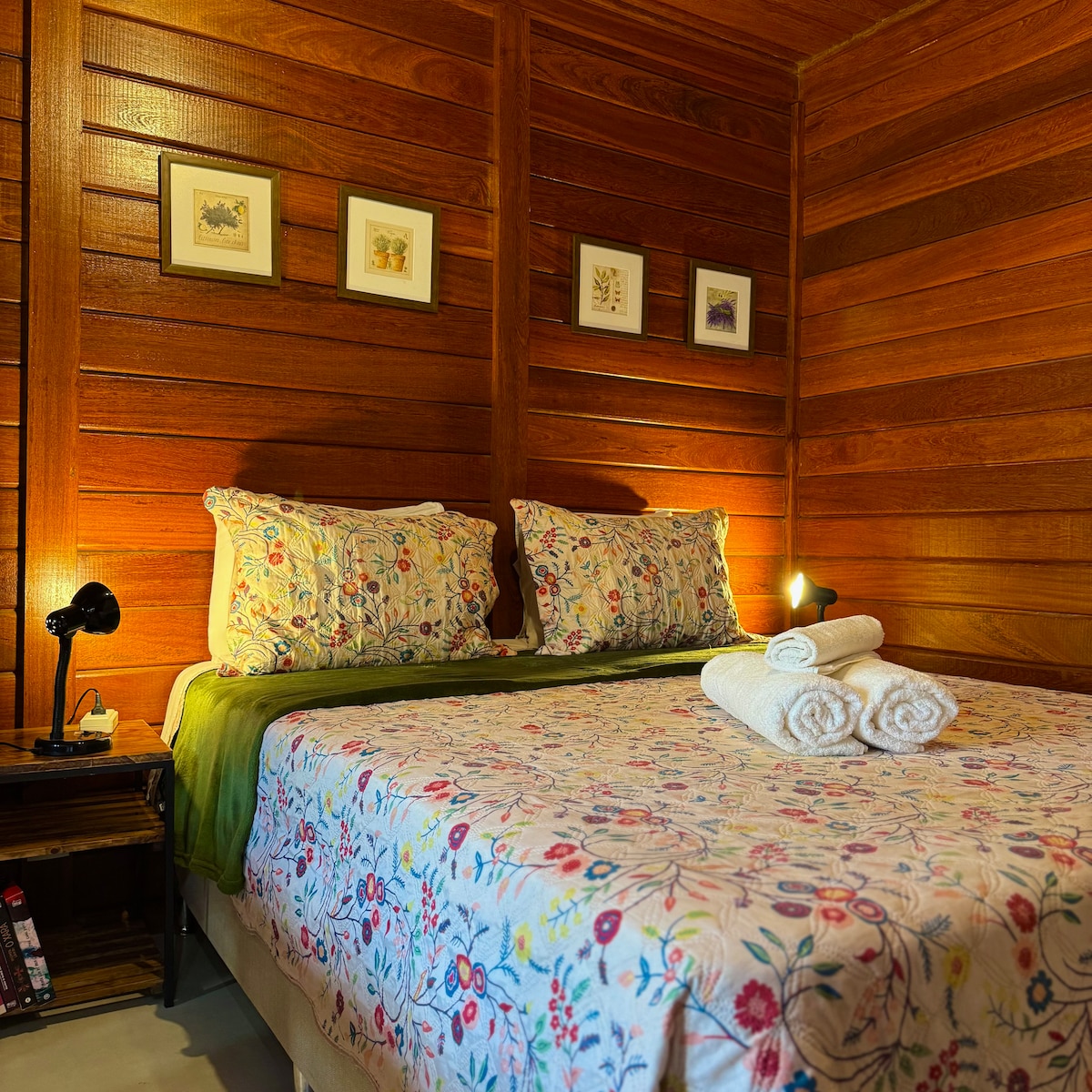 Acreditamos que cozinhar é um ato de amor, por isso oferecemos uma cozinha completa para você preparar uma refeição especial, além de se deliciar com a nossa cesta de café da manhã. Você pode relaxar com todo conforto , assistir Netflix na Tv de 43 polegadas , ou curtir a vista panorâmica do quarto do mezanino. Curta uma deliciosa banheira de hidromassagem na área externa com fogueira, enquanto aprecia a vista maravilhosa de toda cabana integrada com a mata, enquanto aprecia um bom vinho.