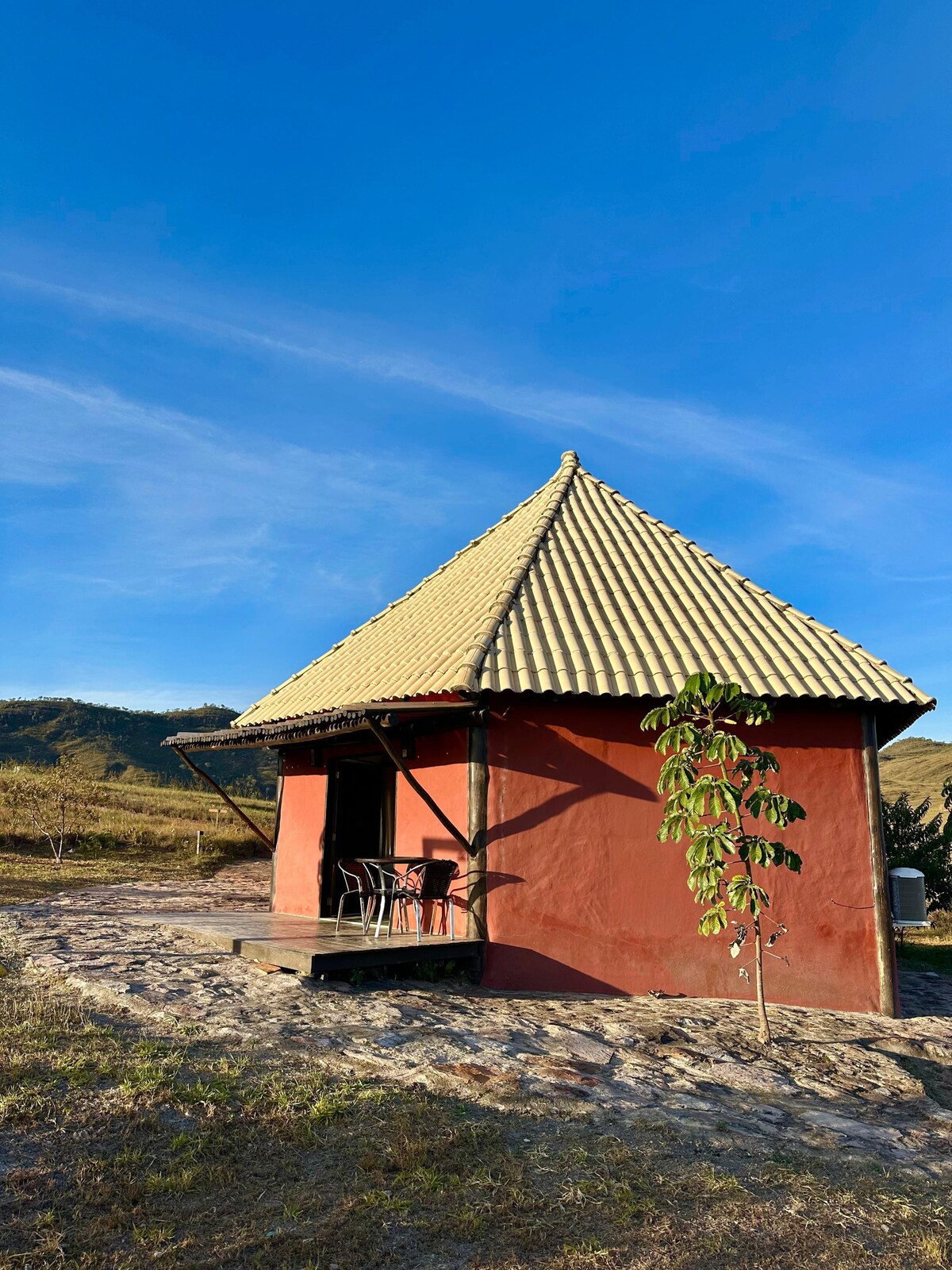 A cozy and refined chalet with a mezzanine, fine finishes and a kingsize bed. On the ground floor there is a large living room, work desk, kitchen and living room and a beautiful and spacious bathroom, with a double sofa bed. It has a balcony with a beautiful view and an outdoor shower. Pure spring water in every faucet, amazing views from the windows. Outside a trail leads straight to a private waterfall All this in the midst of thousands of hectares of untouched Cerrado and rich wildlife.