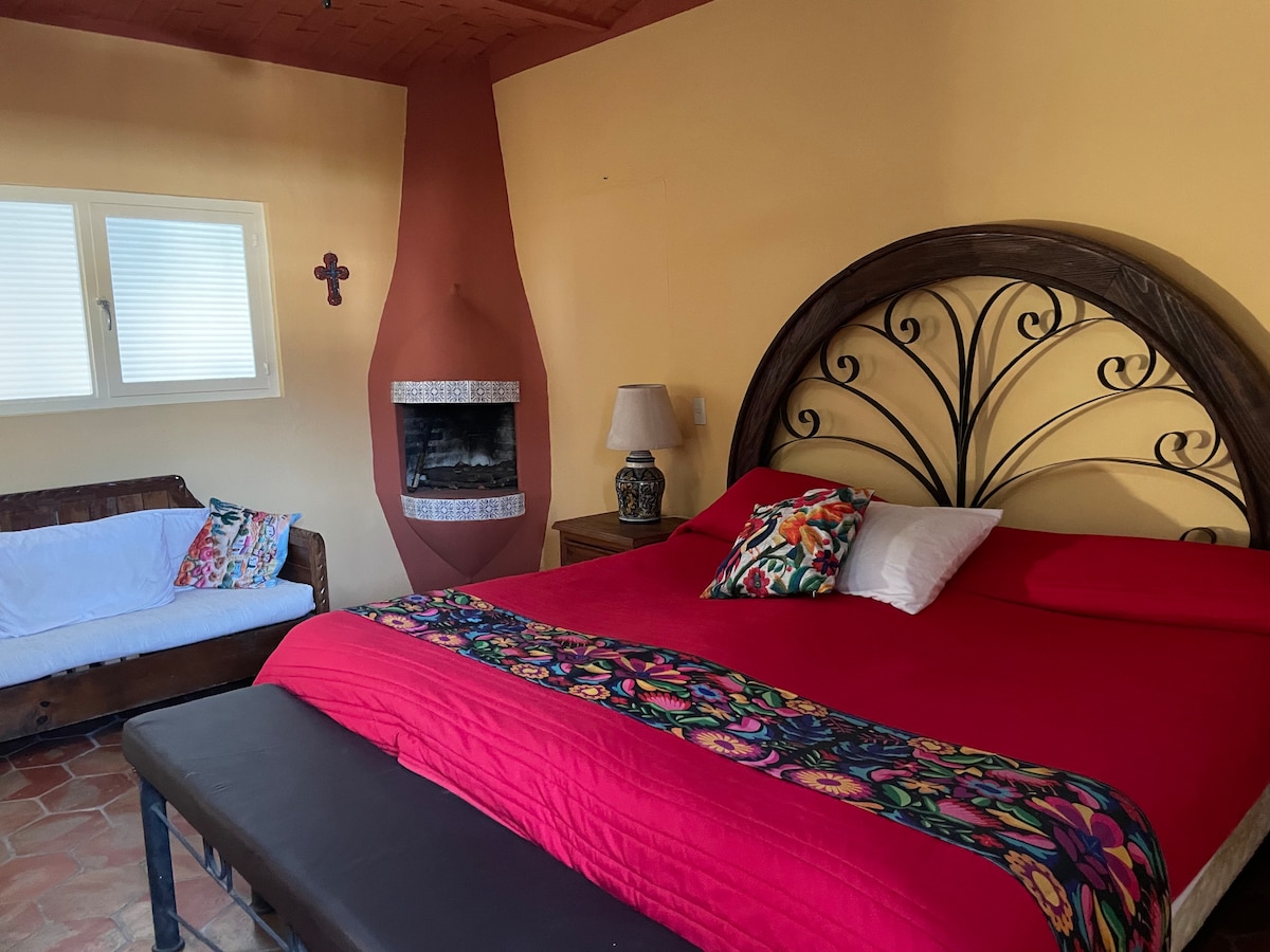 Authentic Mexican Casita in the Heart of Ajijic Village. IDEAL Location for exploring on foot! Upstairs bedroom with a very comfortable queen-sized bed (60" x 80"), fireplace, boveda ceilings, and enchanting balcony with mountain views. Living room, dining area, work desk, flat screen TV & Excellent WiFi (150 Mbps) Well-outfitted kitchenette. Gas stove. FULL SIZE fridge On-demand hot water. Excellent water pressure! Rain Head shower :) Furnished outdoor patio Privacy, Peace, Tranquillity!