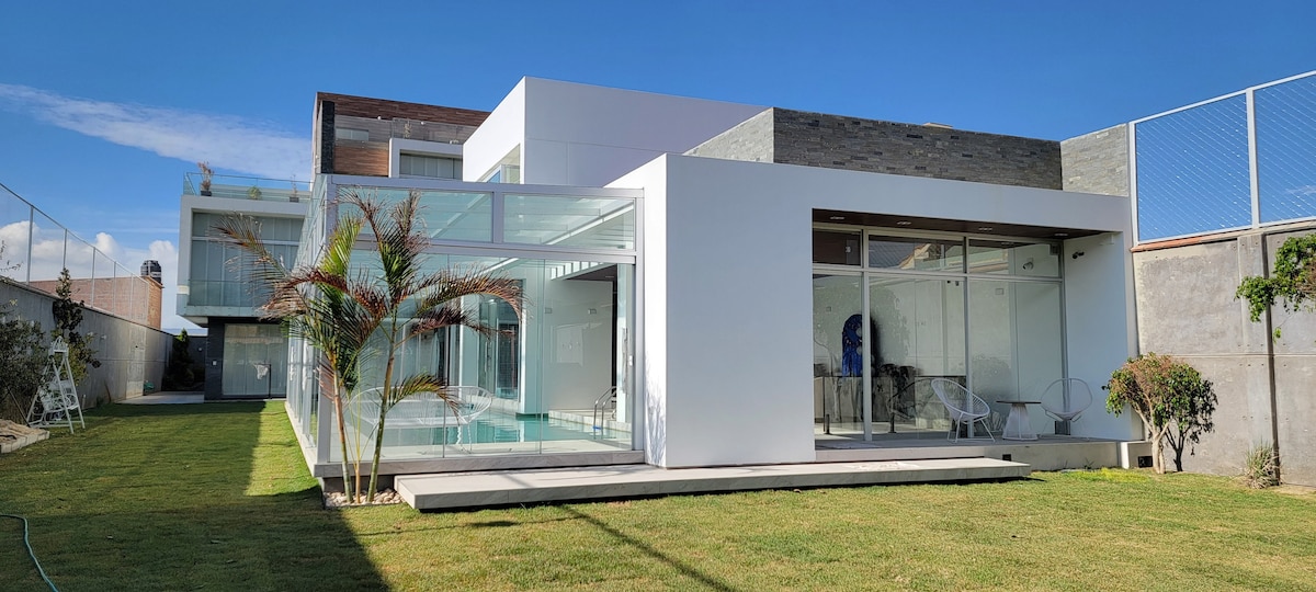 Enjoy a cozy and unique home that combines style and comfort. Fully furnished and located in the west side of Cochabamba, right on a main avenue, you’ll be just minutes away from the city’s busiest spots. Every detail has been thoughtfully designed to offer you a comfortable, peaceful, and memorable stay. Plus, its excellent access to public transportation —including the metropolitan train just a few meters away— makes getting around the city and nearby areas very easy.