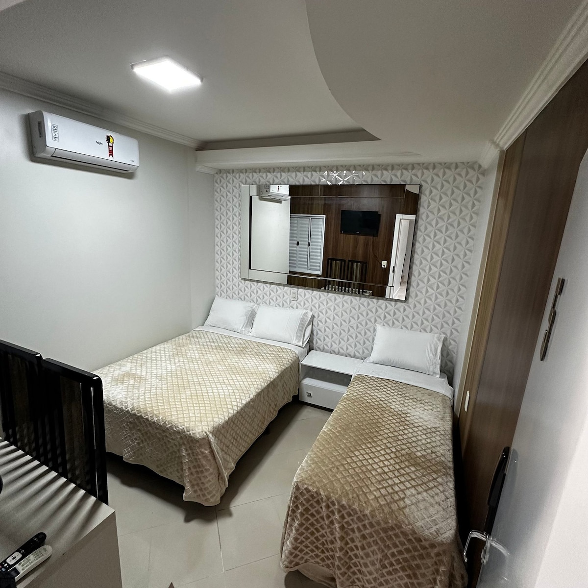 Studio completo e aconchegante! Hospede-se com conforto e praticidade, ideal para casais, famílias pequenas ou quem viaja a trabalho. O espaço conta com: 1 cama de casal, 1 sofá, 1 banheiro totalmente equipado, cozinha completa com utensílios, geladeira, fogão, micro-ondas e chaleira elétrica, máquina de lavar roupas, TV e Wi-Fi, climatizador e 1 vaga de garagem. Tudo isso em um condomínio completo, com infraestrutura de lazer e conveniência. Ideal para quem busca conforto e funcionalidade.