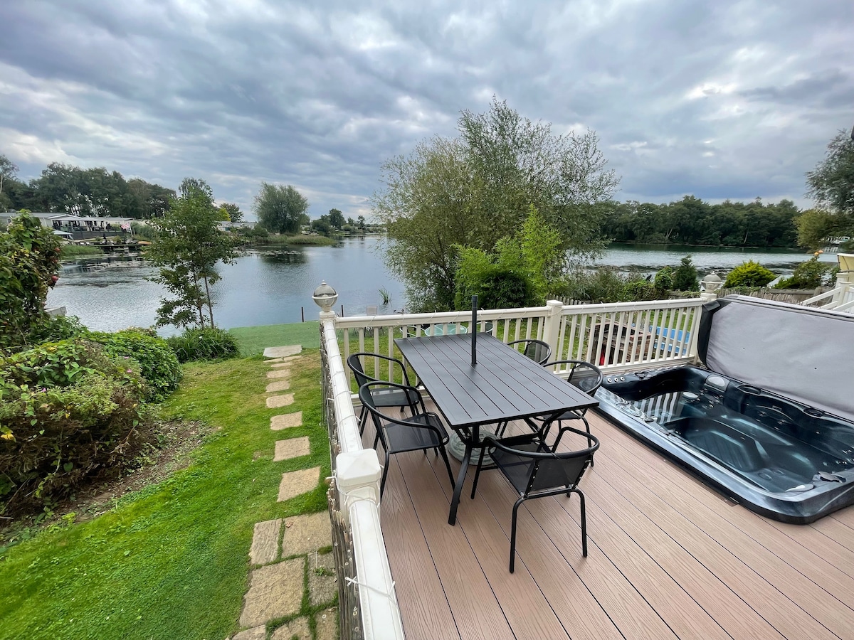 Welcome to our happy place. Memories and dreams are made here..... We are situated on the edge of the Tattershall Lakes Country Park and away from the road on a quiet cul Dr sac. A little Riverbank runs along the back of our holiday home, you can follow it into the villages of Tattershall and Coningsby, taking in the magnificent Tattershall Castle on the way. We have 2 bedrooms. A kingsized bed with small ensuite and a twin single bedroom or can be made as a double bed. We also have a sofa bed and of course our wonderful Hot Tub/ Spa. We're fully equipped with everything you'll need for a relaxing, memorable stay. Beds are made for your arrival and tea/coffee or wine/beer will be waiting for you.....
