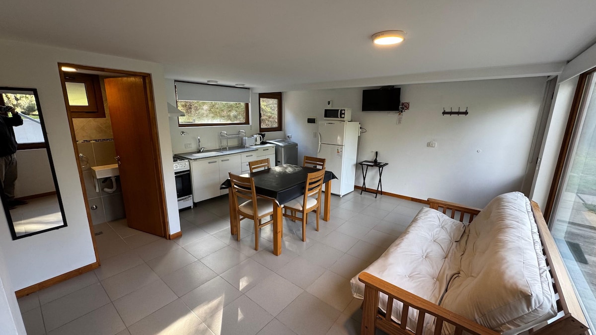 Moderno Monoambiente en el centro de San Martin de los Andes. Totalmente equipado con equipamiento de cocina, toallas, ropa de cama y todo lo necesario para disfrutar de tu estadia. El dpto esta ubicado a 2 cuadras del sector comercial por lo que permite tener total tranquilidad pero estar facil y rápidamente en el sector de restaurantes, negocios y supermercados. Eventualmente, en el dpto. puede ubicarse una tercera cama en un sector superior para un niño/a, que se evalua en cada caso.