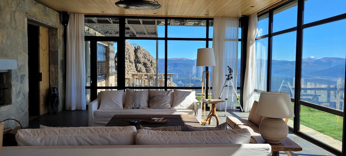Una casa única, con unas vistas increíbles, ubicada en el mirador de la Estancia Miralejos, a 1350 metros sobre el nivel del mar y a 30 minutos de la ciudad. Es la posibilidad de vivir plenamente la naturaleza con todas las comodidades y el confort que facilitan la experiencia de estar en la montaña. El acceso al centro de esquí es por un camino interno sin pasar por el pueblo que toma unos 40 minutos con buen tiempo. Es importante contar con vehículo 4x4 y cadenas para nieve en invierno.
