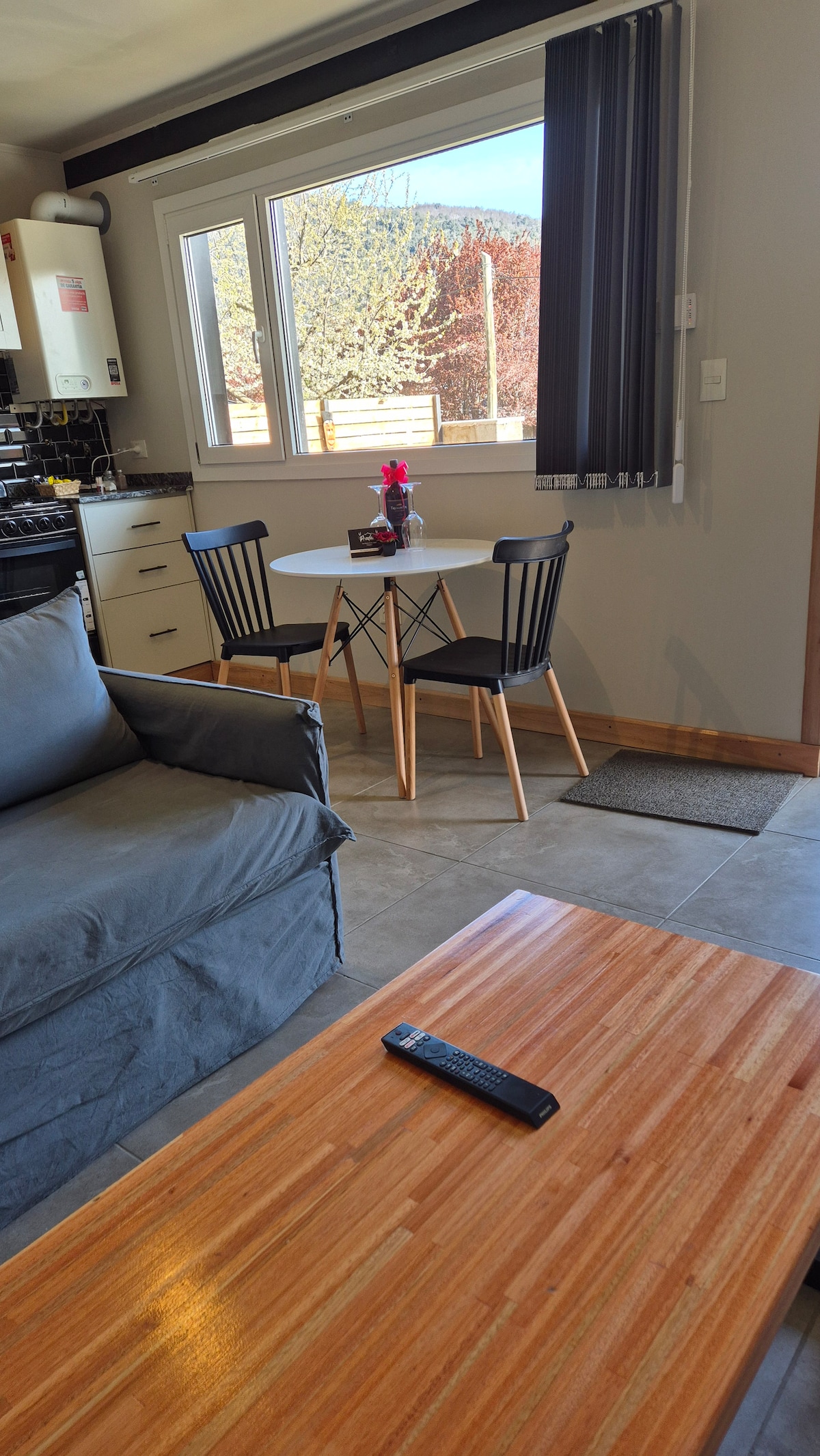 Moderno Monoambiente en el centro de San Martin de los Andes. Totalmente equipado con equipamiento de cocina, toallas, ropa de cama y todo lo necesario para disfrutar de tu estadia. El dpto esta ubicado a 2 cuadras del sector comercial por lo que permite tener total tranquilidad pero estar facil y rápidamente en el sector de restaurantes, negocios y supermercados. Eventualmente, en el dpto. puede ubicarse una tercera cama en un sector superior para un niño/a, que se evalua en cada caso.