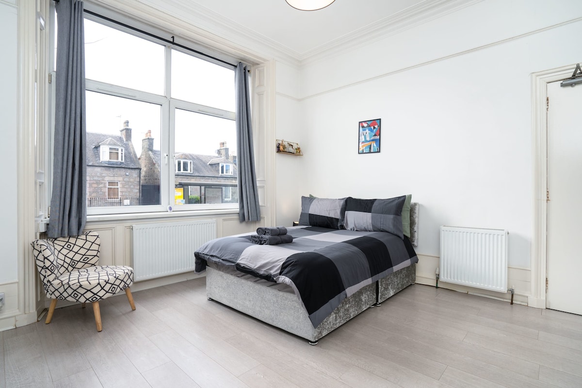 Spacious one bedroom flat in the heart of the city within easy walking distance of shopping, restaurants, bars, music hall, HMS theatre and all the city has to offer. King size bed with high quality mattress. Free Wi-fi. Paid on street parking available. College Street multi-story car park is also a 5 minute walk away. Short Term Let License AC61565F