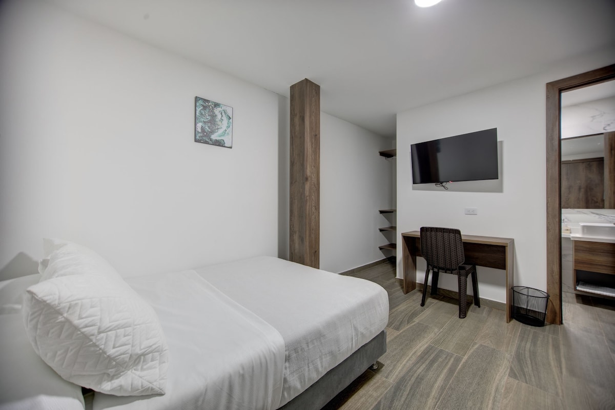 Suites de 38 m2 en la mejor zona de Bogota, junto a los mas exclusivos centros comerciales, restaurantes y clinicas. Ventanas Insonorizadas, Cama BoLiving ideal para un buen descanso. Baño Completo en Habitacion, y Baño Social en zona social. Recepcion 24H