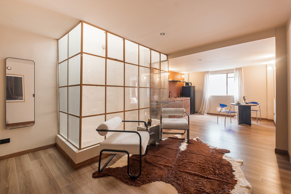 Experience the brilliance of Bogotá in our urban retreat, where stunning views and a private balcony come together to offer you an unforgettable stay. This bright apartment wraps you in a cozy and modern atmosphere, providing the perfect escape in the heart of the city. Discover the charms of Centro Internacional, from fashion boutiques to charming cafés. Explore the local art scene in nearby galleries and immerse yourself in Bogotá’s urban culture.