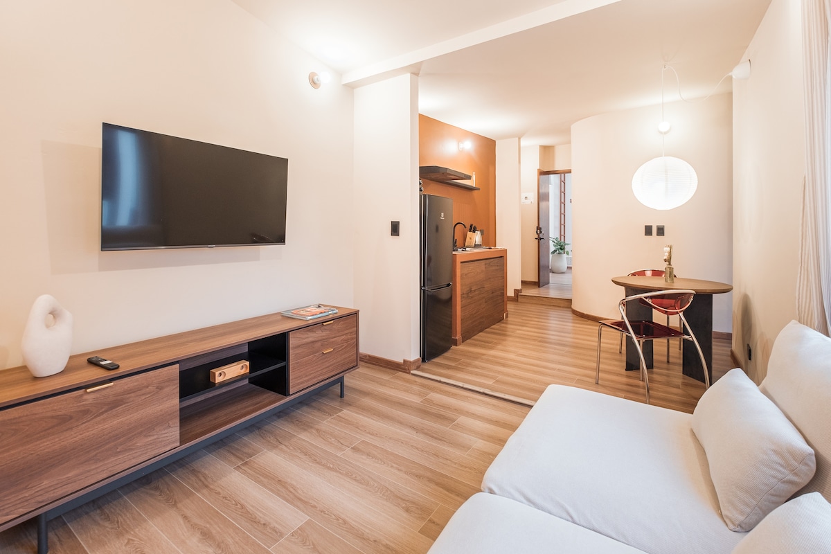 Welcome to my little home, it's a pleasure to share it with you! It has been built with love and has everything you need for long stays. It has a great location. The building is new and is equipped with several co-living areas to enjoy like a terrace, cooking lounge, sports bar, gym, coworking area, meeting room and laundry.