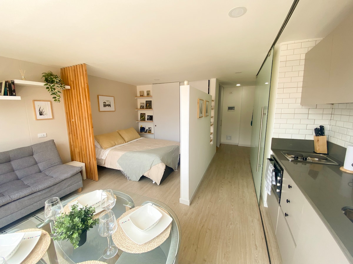 Discover this cozy botanical green studio in one of the most central, safe, and trendy areas of Chapinero—Bogotá's ultimate neighborhood for foodies and creatives. This studio features large windows, a relaxing hammock, a 32-inch TV w/ Netflix, and an efficient kitchen. Just a block away from a shared biking station, Zona G, Quinta Camacho, and Chapinero Alto. The neighborhood is 🏳️🌈 friendly
