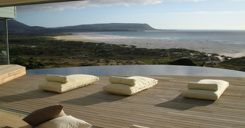 Modern wood and glass home with solar-heated pool on the beach in Klein Slangkop private security estate. Step from the front deck onto beautiful beach sand and direct access to some of the most pristine beaches in the Cape. Breathtaking views. Great surfing. Nature. Stunning sunsets. Situated on the west coast of the Peninsular 50 minutes to Cape Town City Center one way and 25 mins to Cape Point gate the other way. Noordhoek beach is to the right and Long Beach to the left of the house.