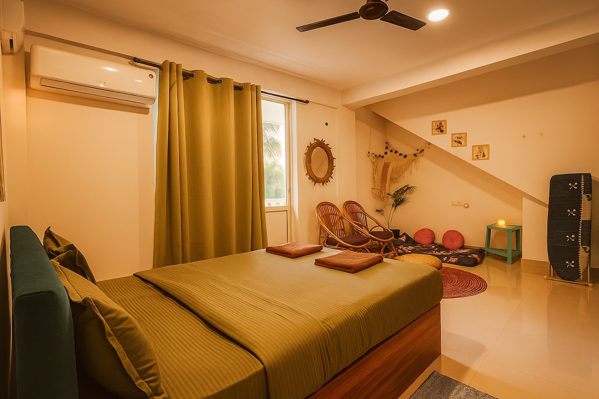 Flash Sale Alert! 🚨 Indulge in a getaway for less. For a limited time, enjoy exclusive rates on premium stays Located in the heart of Siolim, our Studios offer the perfect blend of comfort and convenience. Situated just minutes away from Goa’s top hotspots, including Thalassa, Kiki's. The stay is ideal for those looking to explore the vibrant nightlife and serene beaches of North Goa. 🍽️ Breakfast: Available at an additional cost of ₹500 per person (not included in the current pricing).