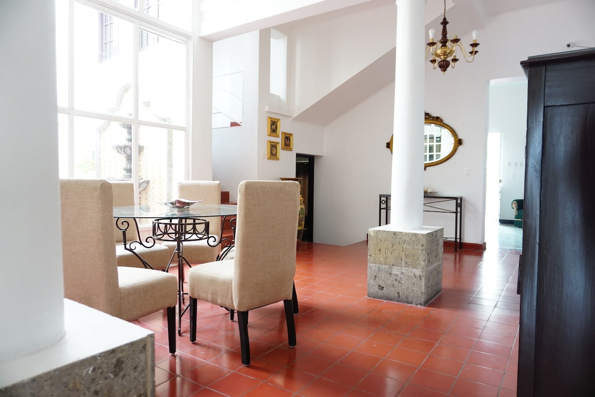 Perfect stay for family or friend groups given spacious bedrooms, privacy and comfortable outdoor patios and terraces! High-speed optic fiber wifi in every corner, dedicated work space & more Beautiful 2,700 sq ft house built at the turn of the 20th Century, beautifully renovated. Stay in a house from Old Guadalajara. Centrally located: walking distance from Degollado Theater, Catedral & near Paseo Alcalde. First place in 2020 Annual Prize for Conservation and Restoration of Historic Places.