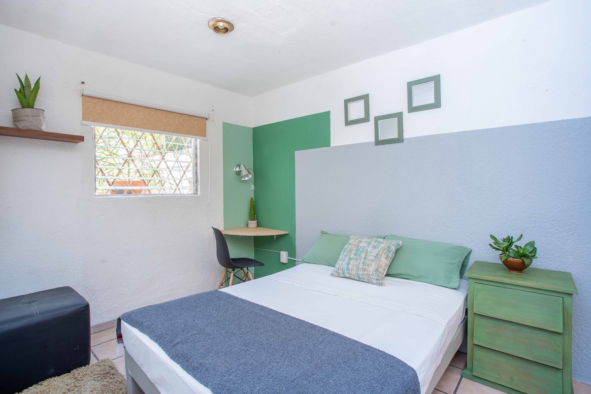 Habitación/estudio amplia e independiente con baño completo privado, ambiente tranquilo. Ideal para relajarse o trabajar. Vista a la ciudad desde el patio, así como de la habitación hacia la alberca, jardín y terraza. Dentro del Fraccionamiento encontrarás parque, iglesia, miradores y la entrada al bosque Mágico (Primavera), aquí podrás realizar actividades al aire libre como Senderismo, jogging, ciclismo y disfrutar de hermosas vistas.