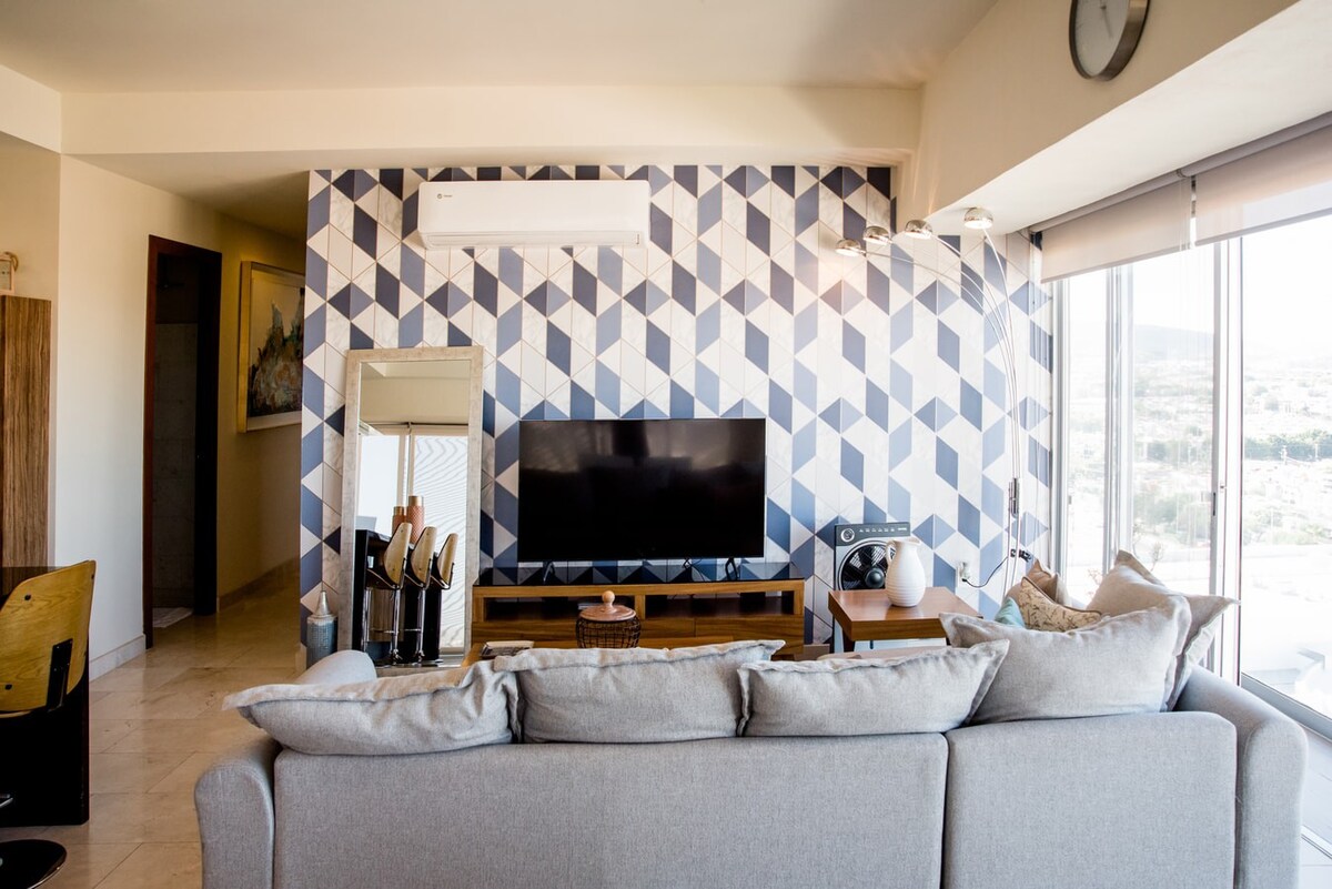 "IMPORTANT": Amenities for 6+ Night Stays Only, Excluding Garden, as per Building Regulations Discover a unique accommodation experience in our modern apartment, nestled in the vibrant Cosmocrat Puerta de Hierro Zapopan. This sophisticated space features a pool, jacuzzi, roof garden, grill, and more. Immerse yourself in luxury at every corner of our 3-bedroom, 2.5-bathroom apartment, equipped with all the amenities you need for an unforgettable stay in Zapopan.