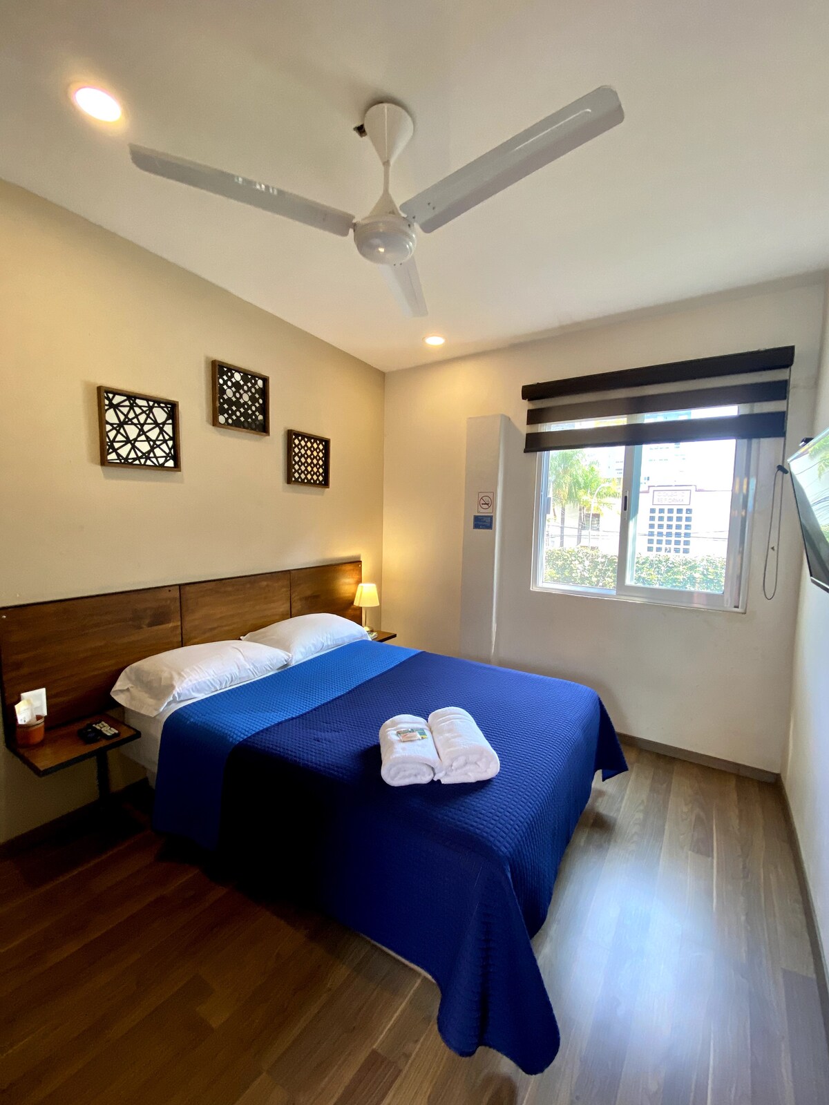 This comfortable ensuite private room with private bathroom and views of the garden is equipped with HD TVs/Netflix , fan (No AC), safe box, towels and toiletries. Our location can't be beated, just half a block from Chapultepec Ave, this famous cultural neighborhood is surrounded by restaurants, coffee shops, bars... Your reservation includes: A light continental breakfast, walking tours and cleaning daily. You will find a friendly staff ready to make your trip an unforgettable experience.