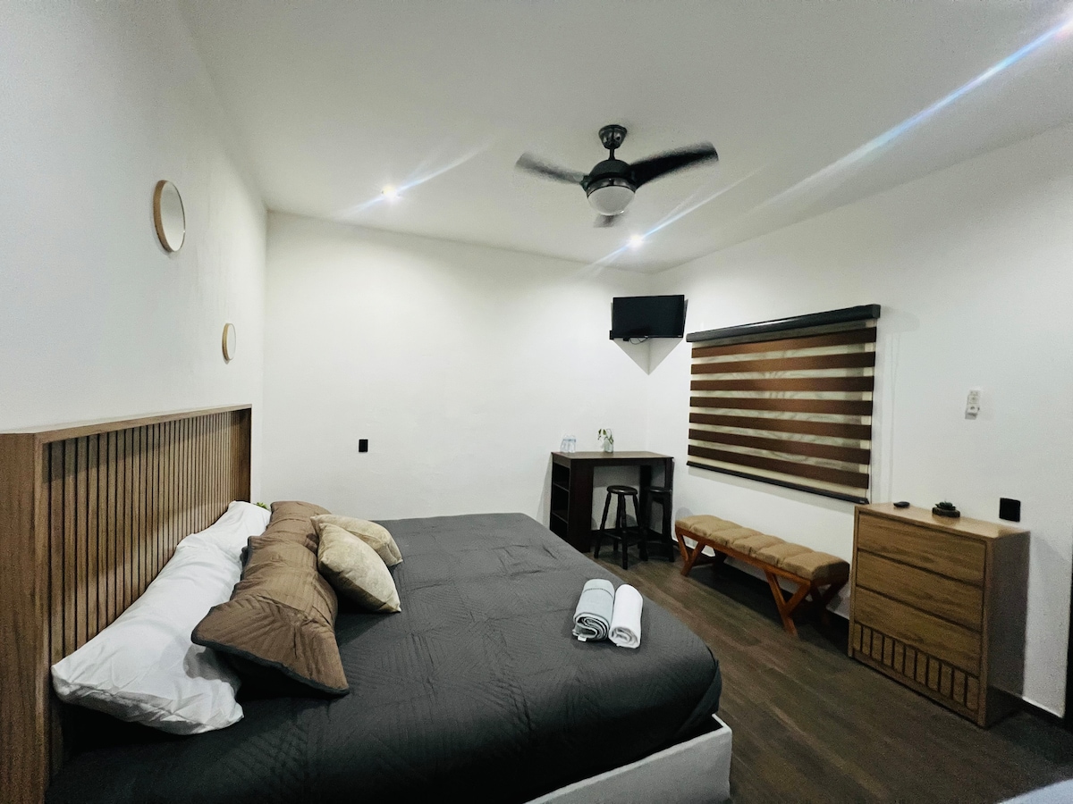 Habitación con baño privado, cama matrimonial o king size, aire acondicionado y calefacción, su excelente ubicación en la colonia Americana distinguida como el barrio mas cool del mundo en el 2022, te permite estar en el lugar donde todo pasa y encuentras caminando, gastronomía, diversión, cultura, arte, transporte público y privado llegas fácilmente a los puntos de mayor interés de la ciudad y está a pocos minutos del centro de la ciudad. No tenemos estacionamiento