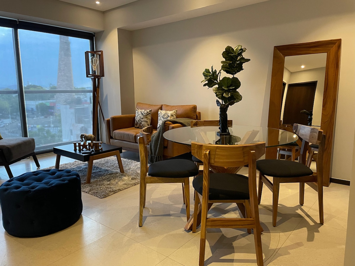 Estamos comprometidos en que tu estancia sea 100% placentera, cuidando cada detalle en limpieza y servicio. Al llegar disfruta la hermosa vista desde el balcón con una botella de vino de cortesía. Ubicado en la mejor zona de Guadalajara, a solo 5 minutos caminando del Corredor Chapultepec, nombrado por Time Out como el vecindario más cool del mundo, rodeado de excelentes restaurantes y vida nocturna. Lo suficientemente cerca para disfrutarlo y lo suficientemente lejos para descansar sin ruido.