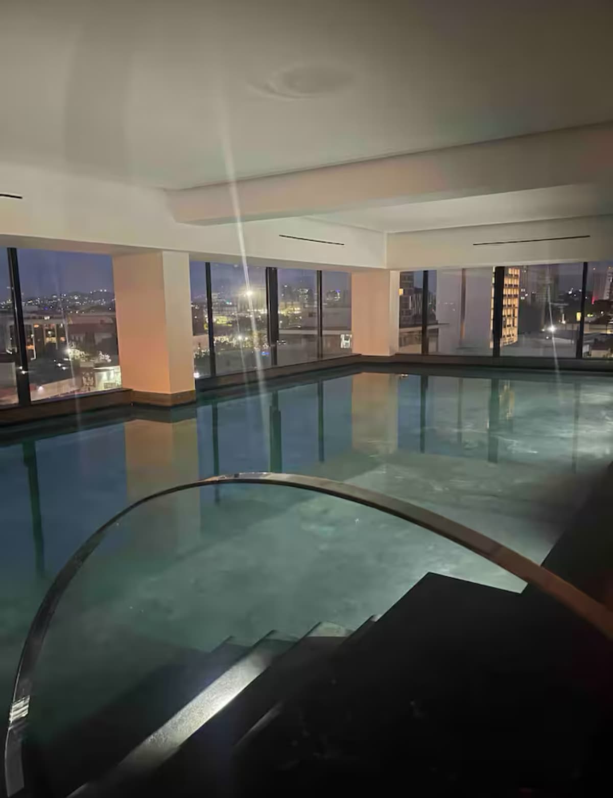 This is one of our apartments inside WIT. Our flat is the most new and trendy place in town. The location is full of cool cafes, restaurants and boutique shops of local designers. Enjoy our pool, grab a beer in the rooftop with 360 views of the city or read a book in the artsy urban wall painted by the talented local artist Enrique Larios. Join us for our sunset yoga session every Tuesday at 7:00pm and also get free parking during your stay! We hope you re-connect with your creativity!