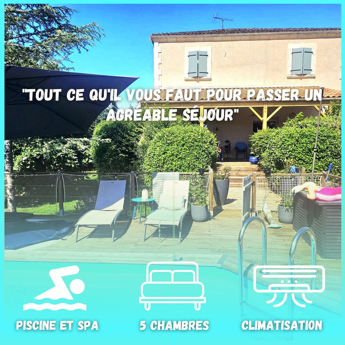 度假屋 - 可容纳 9 人 - 配备游泳池和水疗设施