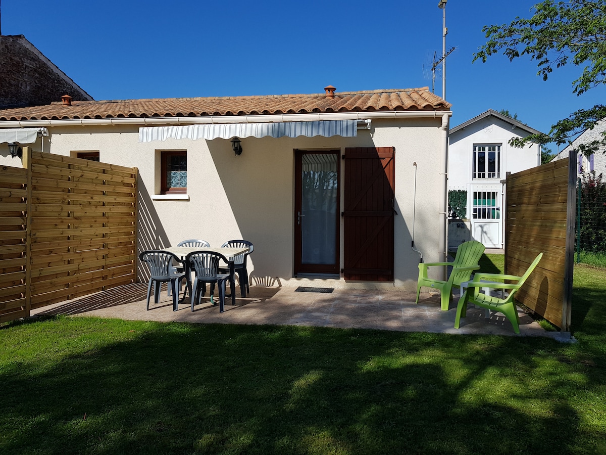 Studio dans les vignes, proche de la mer et des pistes cyclables. Situé entre St-Martin et Le Bois-Plage en ré... Vous pouvez déguster des fruits de mer dans les cabanes ostréicoles à proximité.... Vous apprécierez le calme ambiant, un côté rustique et cosy. Idéal pour les couples seuls ou avec enfant , les voyageurs en solo et les compagnons à quatre pattes. Petit espace tout confort avec kitchenette aménagée, 2 canapés lit, une salle d'eau - wc et un jardinet fleuri.