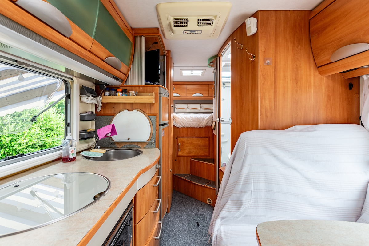 Le camping-car possède toutes les commodités d'un petit studio, l'aspect original et cocooning en plus!. Il est prévu pour 6 places mais nous le louons pour 4 personnes maximum pour offrir un confort optimum. Radio - TV - antenne parabole auto – porte vélo - soute – store extérieur -tables de pique-nique et fauteuils lit capucine 160/200 lits superposés Grand Frigo congélateur WC avec cassette Salle de bain Douche séparée Chauffe eau Chauffage Extincteur