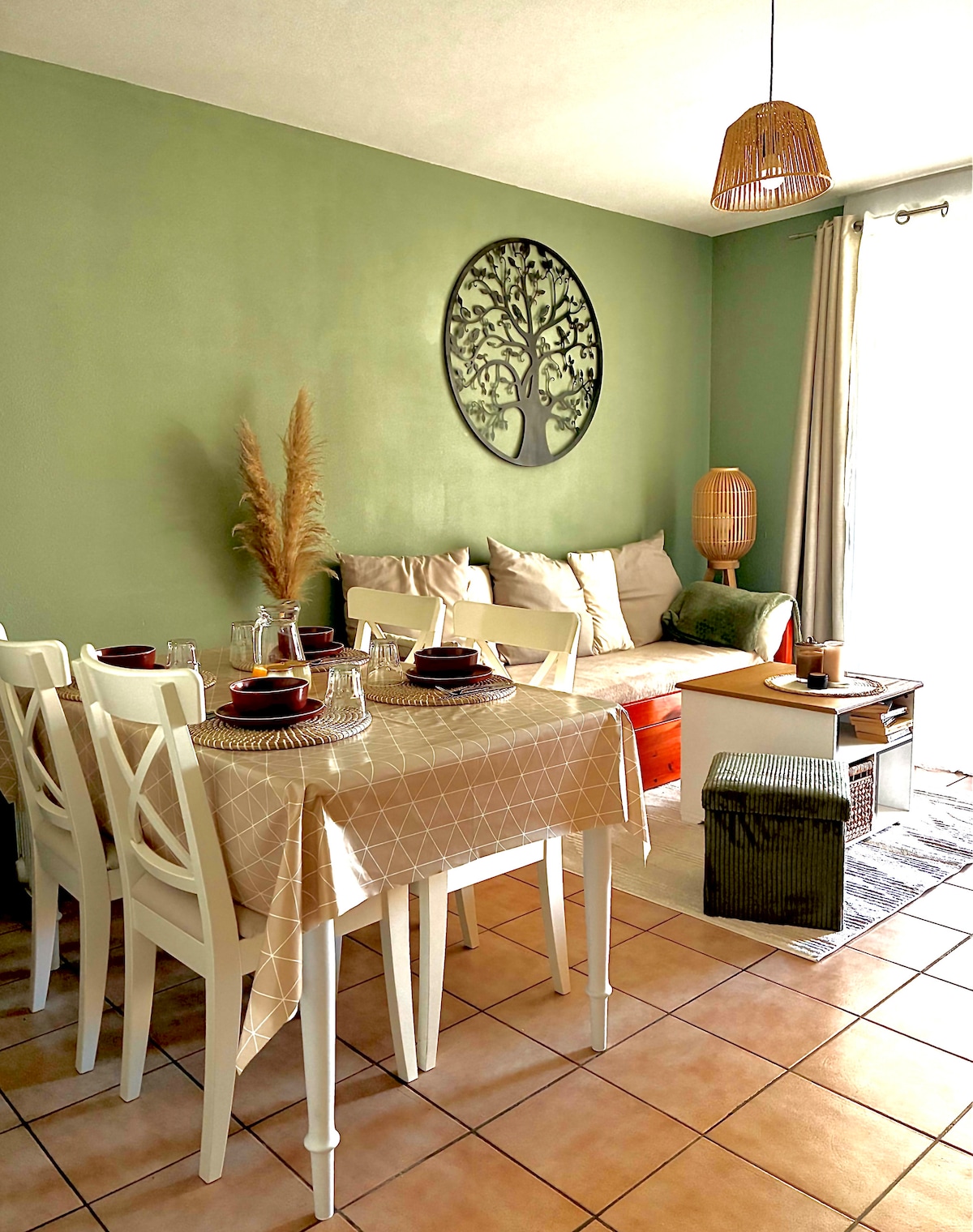 Nous vous proposons un séjour au calme dans un appartement privatif rénové de 60m² au rez-de-chaussée de notre maison, avec terrasse également privée. Le logement comprend 1 chambre avec lit double + canapé 1 place dans le salon. Idéal pour un couple seul ou avec un enfant. Nous mettons à votre disposition 2 vélos pour visiter La Rochelle (10 min du CV à vélo) et l'île de Ré (30 min du pont). Au retour de votre journée, vous pourrez vous délasser dans votre sauna privatif (dans la salle d'eau).
