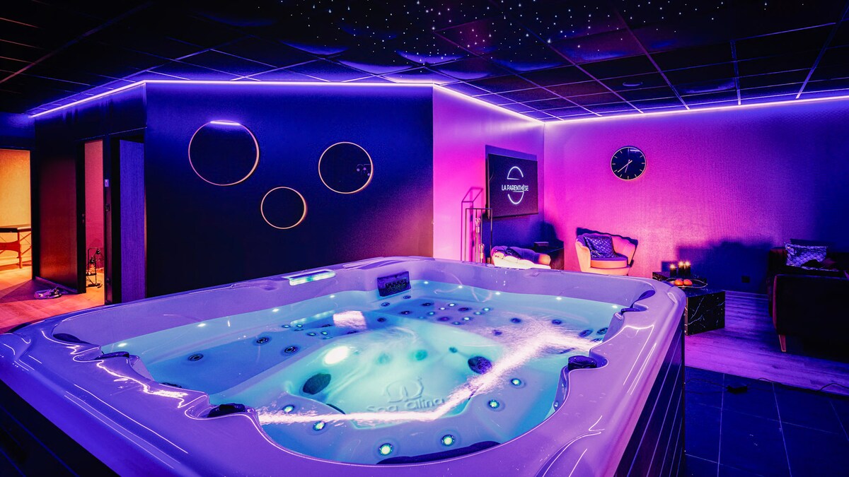 Découvrez La Parenthèse Cognac, un espace de luxe au cœur de Cognac. Climatisé, logement de 130 m², pensé pour accueillir jusqu’à 4 personnes, offre une expérience unique alliant confort et raffinement. Équipements et services inclus : Bien-être : jacuzzi 5 places, sauna 4 places, literie haut gamme. Douche double : idéale pour un moment de détente à deux. Ambiance haut de gamme : système audio intégré au plafond, éclairage ambiant avec un univers ciel étoilé. Champagne, petit déjeuner inclus