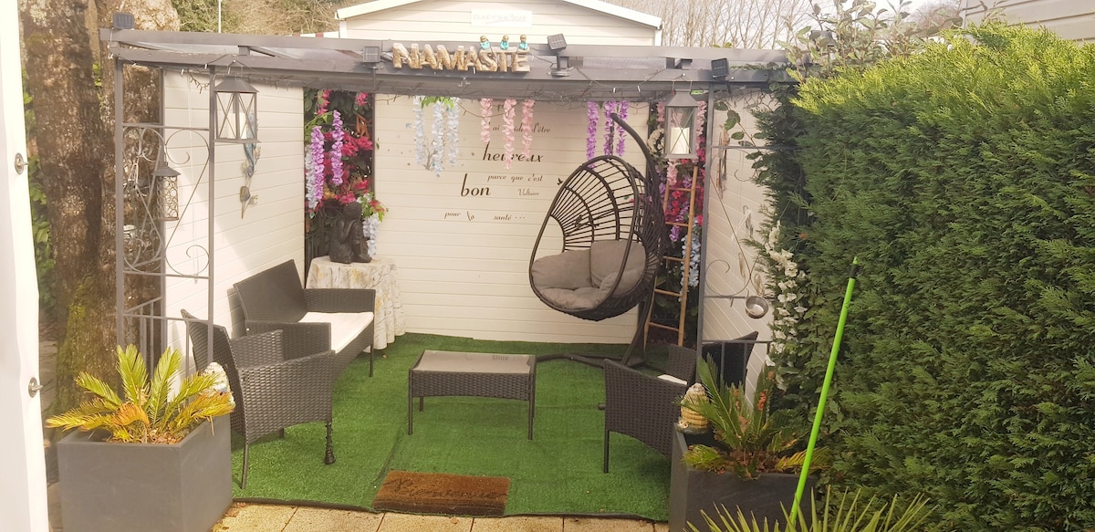 Gîte appart de plain-pied avec sa belle terrasse orientée plein sud, partiellement ombragée où il fait bon se reposer . Véritable havre de paix, le séjour aux harmonies douce , cuisine équipée, salon avec sofa-lit 140cm matelas épais 17cm. Les équipements ne sont pas en reste pour votre plus grand confort. La grande chambre parentale lit 160cm Queen size , tandis que dans la petite chambre au lit simple 90 cm . Et détente dans le patio-jardin fleuri de la demeure /Parking privé/ 1 véhicule .