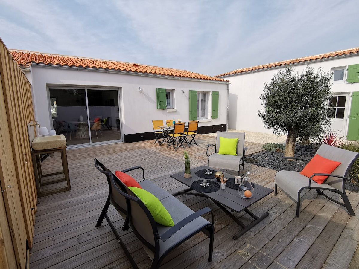 Nested in a closed place, far from prying eyes, our villas are very near the market, shops and the very busy port of La Flotte. One of the most beautiful villages in France. On foot or by bike, everything is accessible in 5 minutes. Leave your car on the car park and enjoy biking in the pretty and flowered back streets of La Flotte.