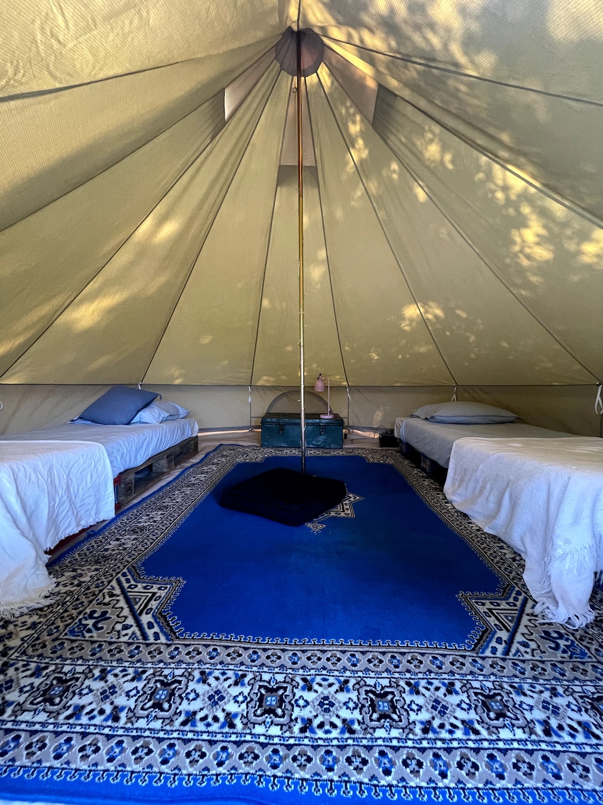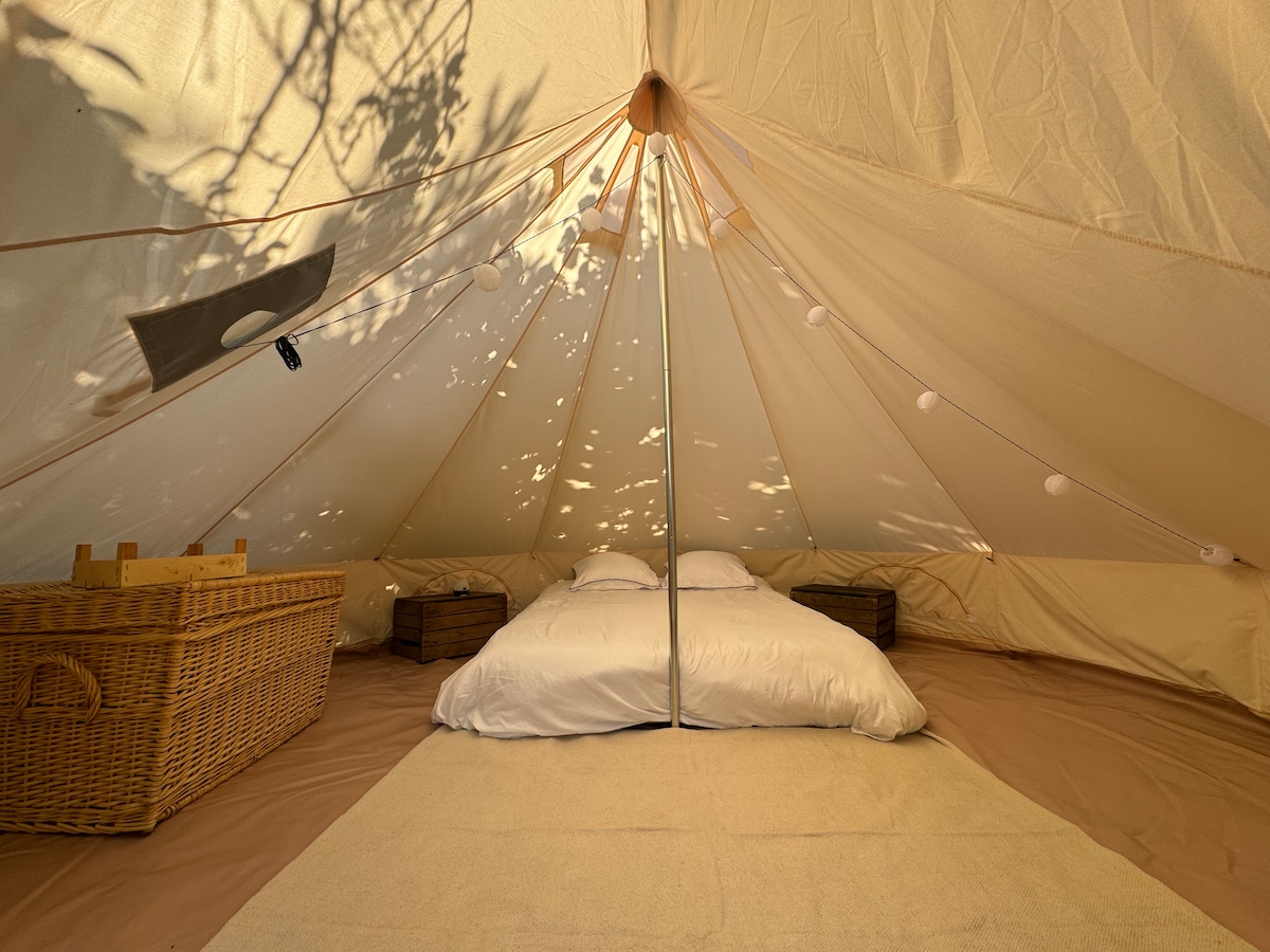 Dormir et vivre une parenthèse enchantée dans un Ecolodge Tipi au Bal Perdu est un voyage à lui tout seul et une douce parenthèse entre amoureux ou en famille. Le Tipi CanvasCamp est en Toile 100% coton avec le label Seal of Cotton . Le voyage continue avec des lits au confort plus, couettes et oreillers en plumes naturelles, draps en coton bio, déco inspirantes avec des produits éthiques. Des petites surprises pleines d'amour, douces et pétillantes, sont mises par ci, par là dans l'écolodge.