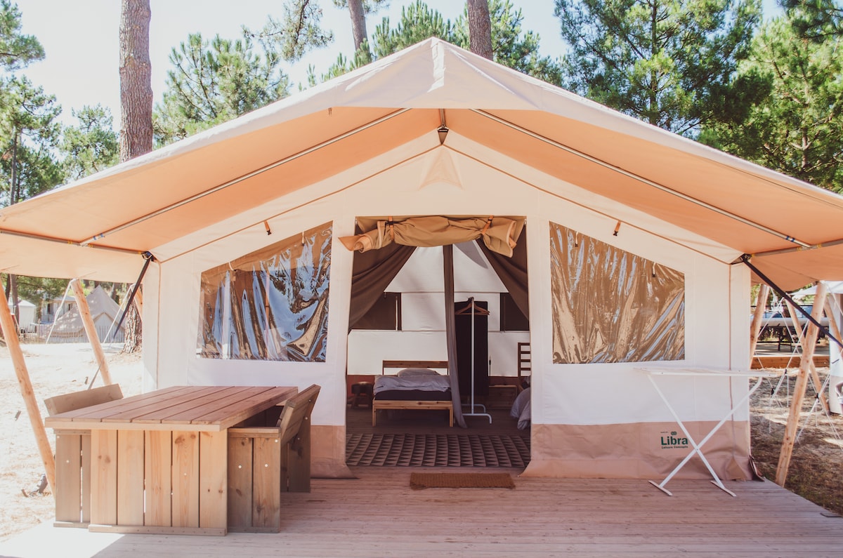 Notre Camping Les Franquettes propose des hébergements atypiques et insolites. Nos hébergements sont des tentes Lodges familiales composées de 2 chambres, d'une cuisine équipée, d'une salle de bain privative et d'une terrasse privée. Au sein du camping 4 étoiles, uniquement juillet et aout une piscine chauffée, un toboggan aquatique, un grand toboggan ludique ainsi qu'une aire de jeux pour enfants sont à votre disposition. Camping très boisé à 4 km de la mer.