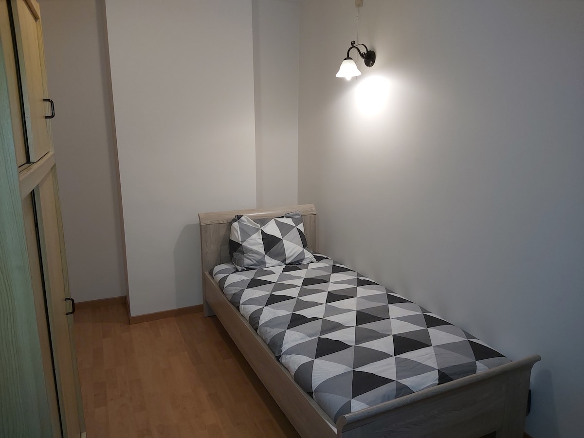 Bel appartement paisible avec mezzanine pour maximum 4 personnes. L'appartement est composé : - d'une chambre en mezzanine avec double lit - séjour ouvert avec canapé d'angle convertible - cuisine équipée ouverte - salle de bain avec baignoire - toilette séparée Proche des commodités, du centre ville (4km) et de l'aéroport de Charleroi (8km).