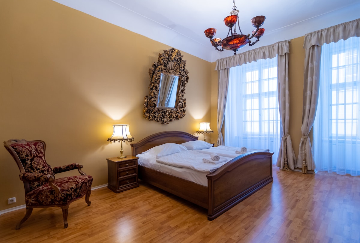 Prostorný pokoj Suite (40m) nabízí výhled na historickou Královskou cestu a je zařízen unikátním starožitným nábytkem. Součástí pokoje je posezení s TV s plochou obrazovkou, klimatizace a bezplatné Wi-Fi připojení. K dispozici je moderní koupelna s prostorným sprchovým koutem. Možnost ubytování jedné další osoby na přistýlce. Nekuřácký, bez domácích mazlíčků.
