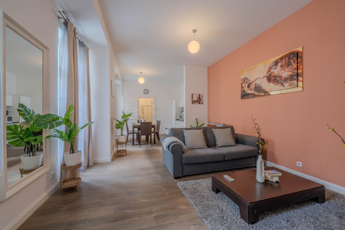 Welcome to our cozy apartment in the heart of the Prague! The apartment offers comfortable accommodation for up to 4 adults and is equipped with everything to enhance your stay. The bedroom features a double bed, and in the living room, you'll find a sofa bed. Both rooms can be closed off for maximum privacy, whether you're traveling with friends or family. Electric roller blinds create the perfect setting for optimal relaxation or sleep, even if you need to rest during the day.