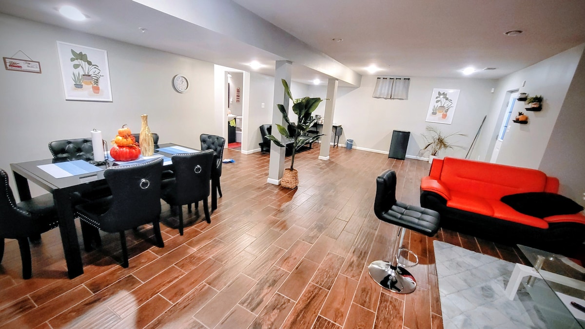 Clean, quiet, and beautiful neighborhood. Just minutes away from restaurants, malls, and shopping centers. Free parking for up to 2 cars. This beautiful place is just miles away from Washington DC and the MGM National Harbor. The entire basement is Private to you only and equipped with everything you need for a pleasant and beautiful stay. Dining room, Cofee place, office, living room, 2 TVs, sofa bed etc. You have free access to high speed internet, the community swimming pool, and the lake.