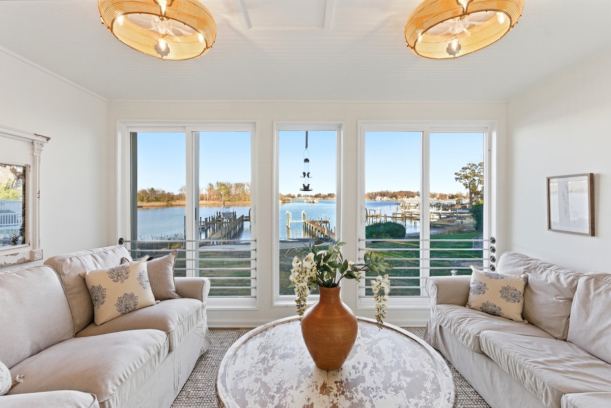 Immaculately maintained 4-bedroom waterfront home + home gym on Cobb Island with water views from every window! Four beach cruiser bikes & private dock w/ 4 kayaks, to enjoy the peaceful Neale Sound. Hot tub + private deck off of the kitchen. Wall of windows inside the home, flooded w/ natural sunlight. Views of the sound & the river side of the island. 3 BR are large (2 King beds/1 Queen), w/ their own BA (1 BR w/ BA is on 1st floor, no stairs). Smart TV's in 3 BR's. Great entertaining space!