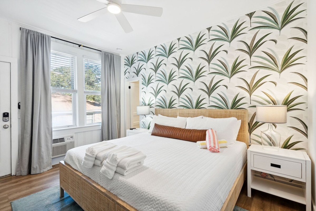 Welcome to Circulo's Corner Suite, creatively designed for comfort. Highlights include three additional window treatments that fill the oversized space with natural light, along with bespoke works from local artists and makers. Located in the heart of North Charleston’s Park Circle district, our boutique hotel blends artisan craftsmanship with modern comforts. *We are in our soft opening - Due to this, rates are discounted as we finish up details * Permit Number: LIC063515